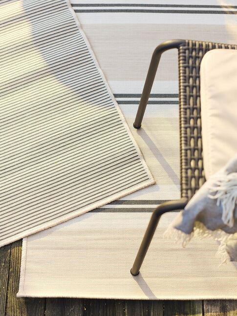Универсальный ковер с классическими полосами, который подойдет практически для любого помещения - как в помещении, так и на улице. Если через некоторое время вам захочется придать ему новый вид, просто переверните его и используйте совместимый рисунок на обратной стороне.