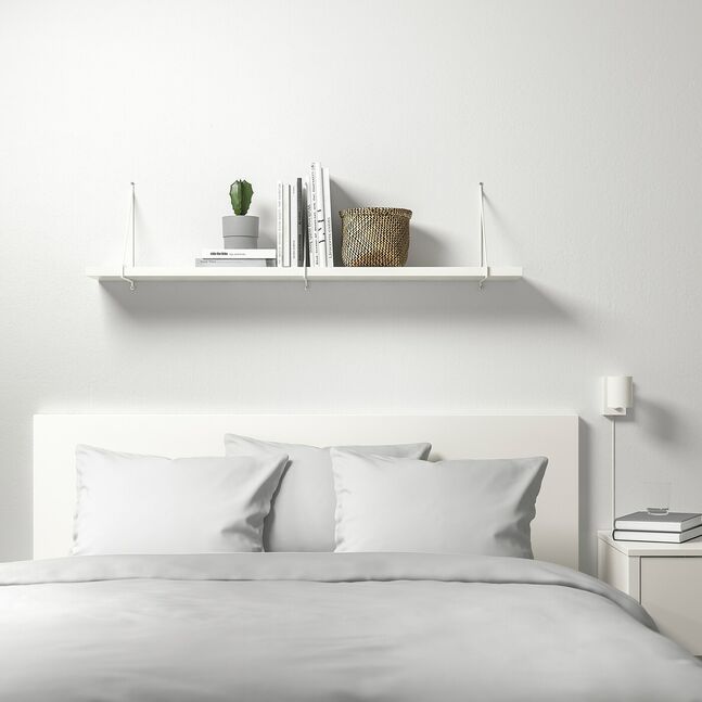 Полка BERGSHULT имеет одну скошенную и одну гладкую стороны по длинным краям - выбирайте сторону, обращенную в комнату, в зависимости от того, какой стиль вам больше нравится. Сочетайте ее с кронштейнами, которые вам нравятся, - и храните и выставляйте в соответствии со своим вкусом и потребностями.