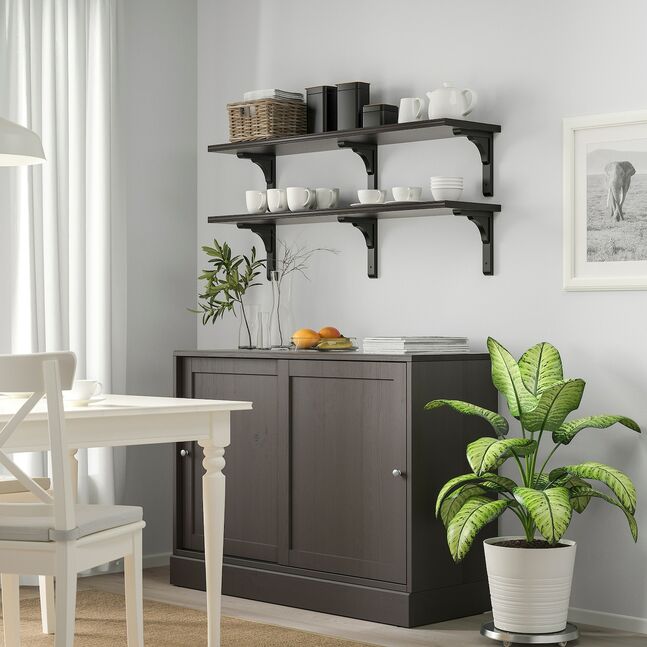 Полки BERGSHULT 120 см не рекомендуется сочетать с кронштейнами GRANHULT из-за риска провисания полок.