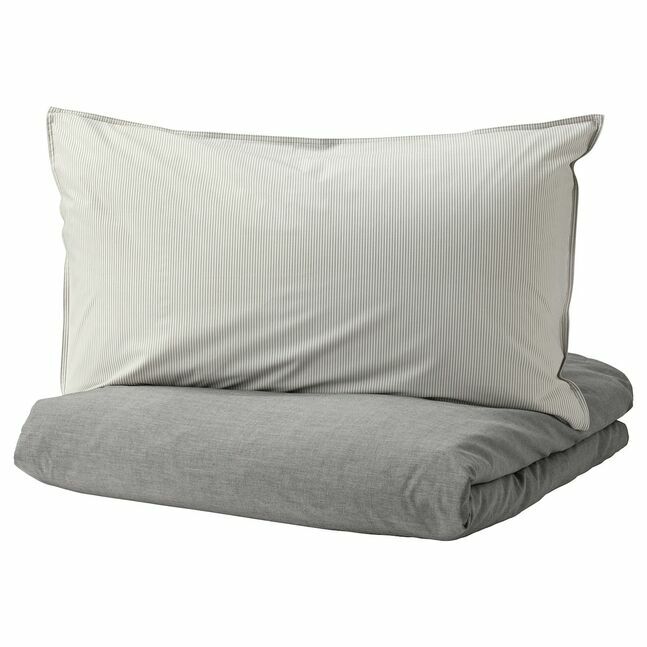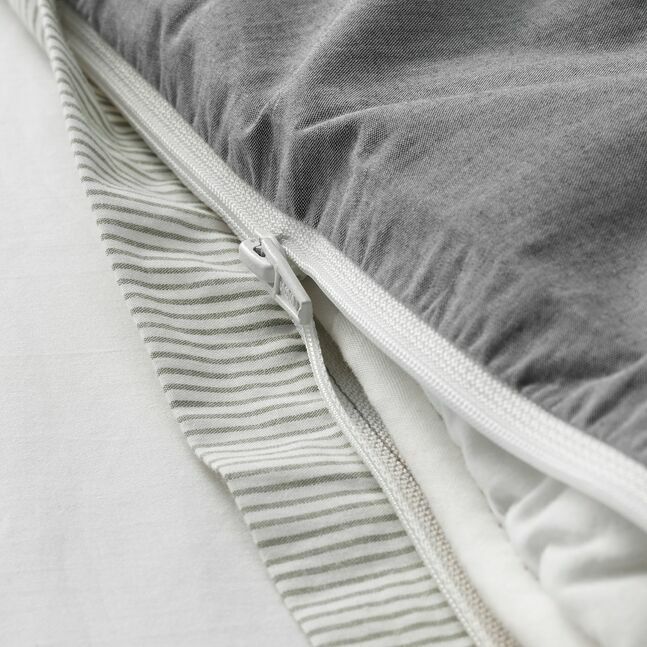 Прохладный, хрустящий пододеяльник из мягкого хлопкового полотна с высоким содержанием нитей. На боковых сторонах разные узоры в мягких цветовых тонах - шамбре или полоска. Потайная молния удерживает пододеяльник на месте.