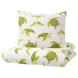 Черепаха на этом пододеяльнике и наволочке также доступна в виде мягкой игрушки в коллекции BLÅVINGAD.