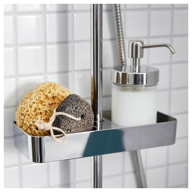 Устали от разбросанных в душе бутылок? Вы можете легко решить эту проблему с помощью полок для душа. Они крепятся на любую из существующих душевых перил ИКЕА и оснащены интеллектуальной функцией, позволяющей регулировать их положение вверх или вниз. Больше не нужно нагибаться - все шампуни, кондиционеры и прочие вещи будут под рукой. Ассортимент аксессуаров для ванной комнаты и душевых наборов полностью согласован, поэтому вы можете наслаждаться аккуратным душем в индивидуальном стиле.