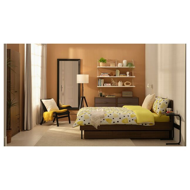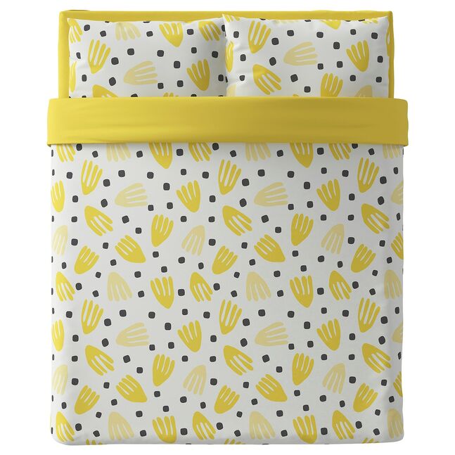 Матовая поверхность ткани делает этот комплект постельного белья с 2 наволочками, 1 плоской простыней и 1 пододеяльником удивительно мягким, а солнечно-желтый рисунок придает спальне свежий вид.