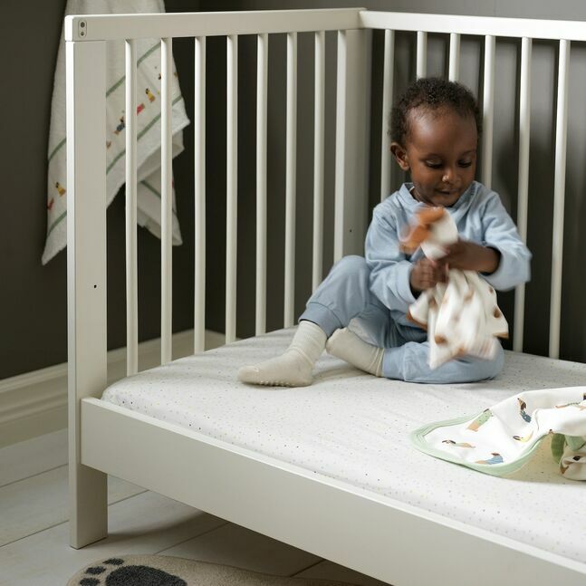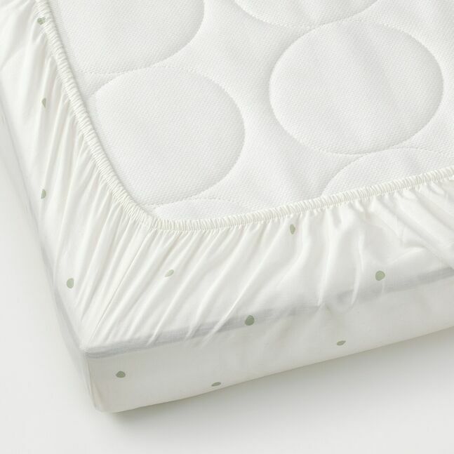 "Мягкие простыни, прохладные и комфортные на ощупь, - хорошее начало для крепкого сна. Хлопок - прекрасный натуральный материал, который дышит, когда малышу становится тепло". Серия DRÖMSLOTT с милыми щенками в нейтральных цветах способствует созданию спокойной атмосферы в постели. Многие малыши также чувствуют себя в безопасности, когда рядом с ними в постели находится мягкая игрушка. "Прикосновение к чему-то знакомому может помочь им успокоиться и заснуть".