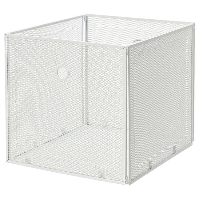 Этот ящик для хранения из белого металла позволяет легко поддерживать порядок в вещах. Сетка позволяет видеть, что находится внутри, а размер идеально подходит для стеллажа KALLAX.