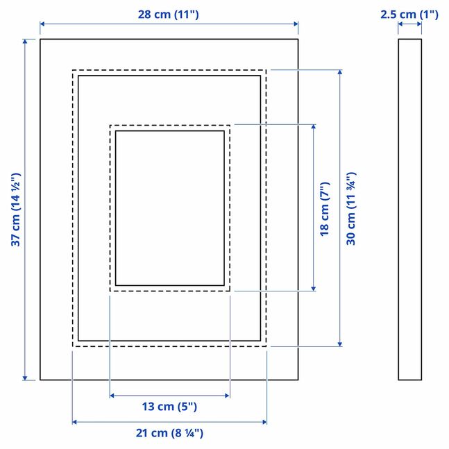 Эта рамка подходит для фотографии размером 13x18 см, если использовать ее с креплением, и для фотографии размером 21x30 см, если использовать рамку без крепления.