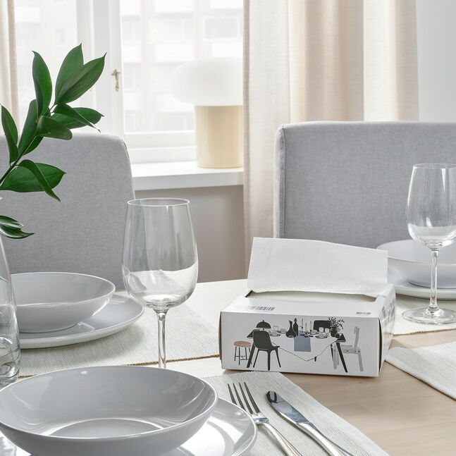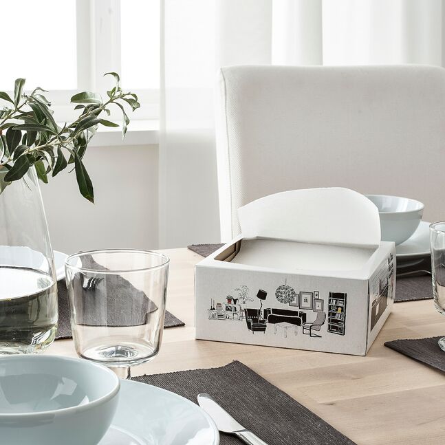 Помните свою любимую мебель ИКЕА - диван в доме вашего детства или книжную полку в вашей первой квартире? Эта коробка с салфетками украшена некоторыми из наших самых любимых товаров, которые, мы надеемся, вызовут у вас много дорогих воспоминаний. Салфетки сделаны из двухслойной бумаги, которая обладает высокой впитывающей способностью, поэтому на их изготовление уходит меньше материалов, но мы думаем, что иконки на коробке принесут больше всего радости. Поделитесь своими воспоминаниями и историями из прошлого за обеденным столом или на пикнике!
