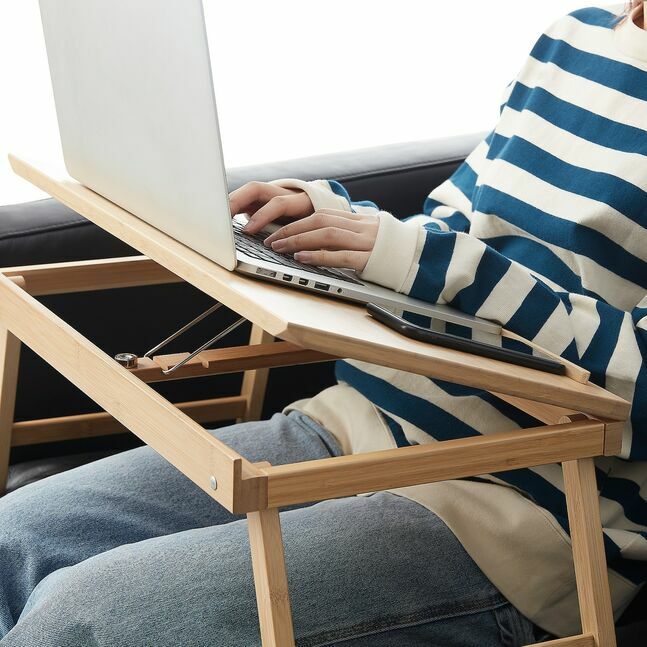 Наклонная подставка для ноутбука для повседневного использования, когда вы хотите поработать на диване. А по выходным - практичный поднос для долгих завтраков в постели. Его легко носить с собой, а также легко сложить и убрать.