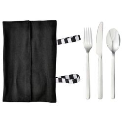 Столовые приборы изготовлены из прочной нержавеющей стали, а чехол - из стильной и прочной ткани.
