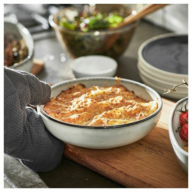 Вы также можете использовать это небольшое блюдо для духовки в качестве глубокой тарелки. Красивая поверхность с песочной глазурью превращает любое блюдо в чистую радость - и позволяет подавать его стильно, прямо из духовки на стол.