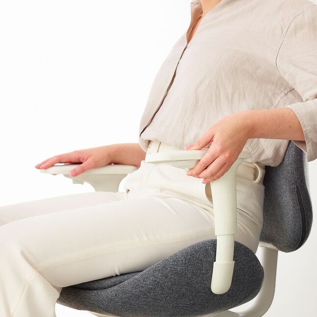 Подлокотники обеспечивают поддержку верхней части предплечий и снижают нагрузку на спину и плечи. Их можно регулировать вверх/вниз и вперед/назад, чтобы обеспечить нужную поддержку во время сидения за столом.