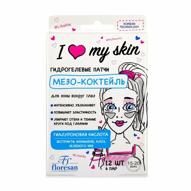 Патчи гидрогелевые для глаз флоресан мэзо-коктейль i love my skin 48гр