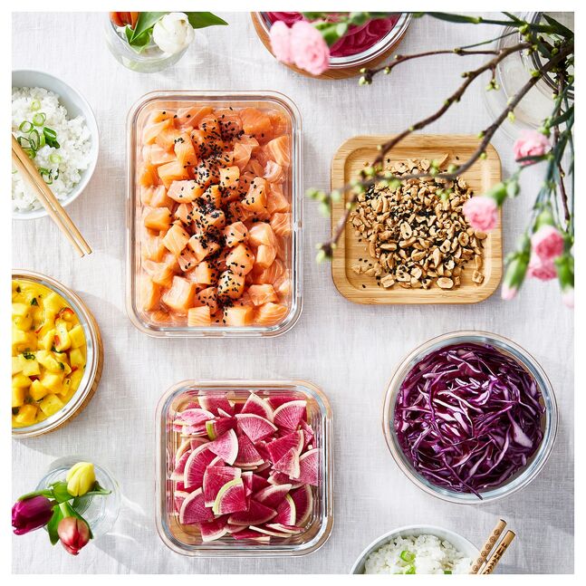 Ешьте сейчас. Или позже. В этом прочном пищевом контейнере из стекла, устойчивого к воздействию печи, легко хранить и разогревать пищу. Материал не впитывает запахи и не обесцвечивается - идеальное решение, когда вы хотите насладиться домашними блюдами в кругу семьи.