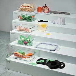 Серия ИКЕА 365+ для хранения продуктов была удостоена одной из лучших в мире наград в области дизайна - GOOD DESIGN. В основе гибких продуктов лежит уникальная концепция платформы с контейнерами и крышками разных размеров, которые можно комбинировать различными способами. Это облегчает уход за остатками пищи, их хранение и поиск, а также позволяет брать их с собой в дорогу, сокращая при этом количество ненужных пищевых отходов. Хорошо для окружающей среды и для вашего кошелька!