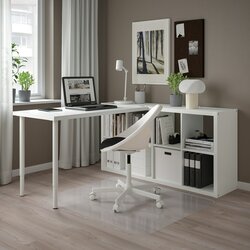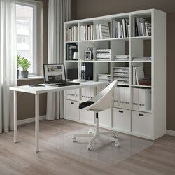 Используйте фурнитуру INLÄGG, чтобы прикрепить столешницу и ножки к полке KALLAX. Таким образом, вы создадите практичное решение для письменного стола и превратите простой стол в комбинацию с большим количеством мест для хранения.
