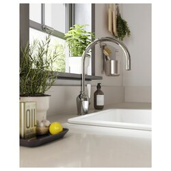 Хромированный кран INSJÖN помогает снизить потребление воды и энергии - так вы сможете уменьшить свои счета. Высокий излив удобен для мытья больших кастрюль, а качество гарантированно выдержит долгие годы мытья и ополаскивания.