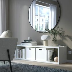 В комплекте с подрамником KALLAX, придающим стеллажу новый вид и облегчающим уборку под ним.