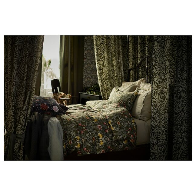 Английское движение "Искусство и ремесло" - источник вдохновения для меня, и мне повезло, что я живу рядом с замком Тьолохольм, самым красивым в Швеции объектом "Искусства и ремесла". В этом замке я как кошка - служители позволяют мне приходить и уходить, а еще я выращиваю цветы на территории". Выкройки для пододеяльника KÄRRDUNÖRT и чехла для подушки TUVSÄV сделаны по моим эскизам этих цветов. Они кажутся драгоценными и вневременными - надеюсь, они будут любимы и долговечны в вашем доме".
