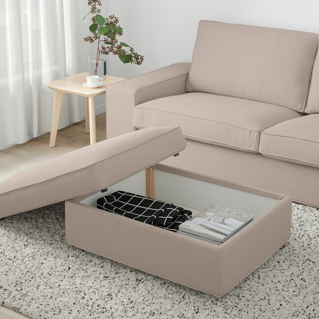 Ножной стул KIVIK - это нечто большее, чем кажется на первый взгляд. Отдохните, положив на него уставшие ноги, или воспользуйтесь скрытым пространством для хранения вещей - все под рукой, но не на вид...