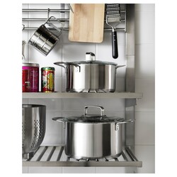 Когда ложки, специи и рецепты имеют свое определенное и заметное место на стене, вы получаете больше пространства и лучший поток при приготовлении пищи. С серией KUNGSFORS легко создать индивидуальную комбинацию и хранить все так, чтобы предметы были легко доступны, а вы получали хороший обзор на кухне, как профессиональные повара. Разместите кастрюли на открытых полках, ножи - на магнитных подставках, а посуду - на крючках. Тогда у вас все будет под рукой и много места для работы!