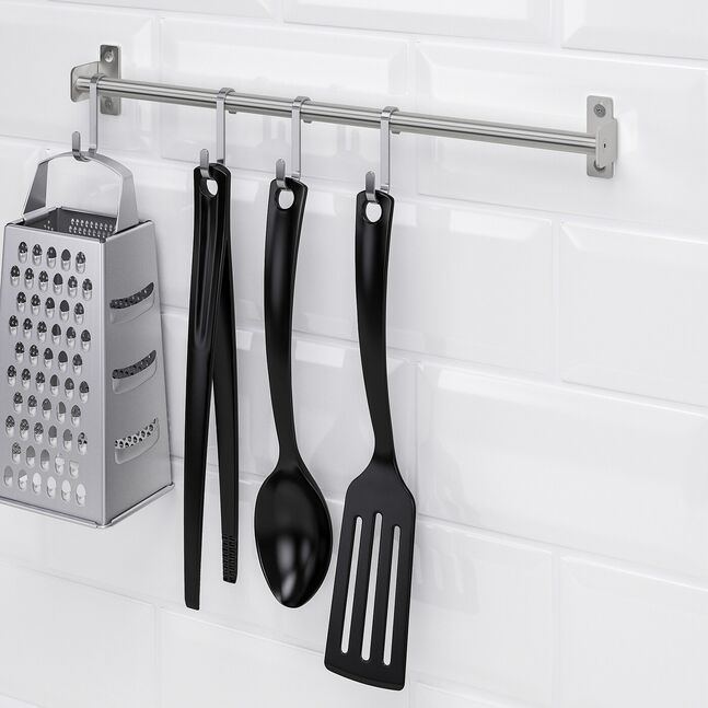 Вы можете освободить место на столешнице, повесив аксессуары на рейлинг.