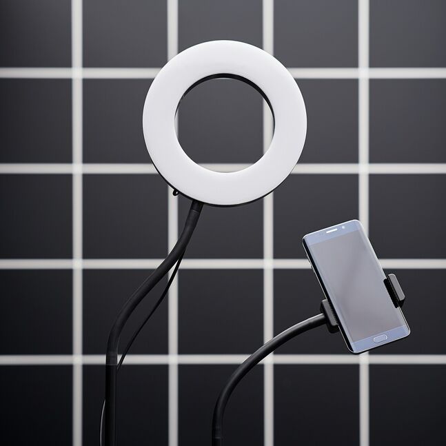 Обязательный атрибут каждого видеостримера - круглый светодиодный фонарь и прочный держатель для мобильного телефона, который можно направить и настроить так, как вам нужно, чтобы создать идеальный видеоклип или селфи.