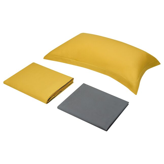 Этот желто-серый комплект постельного белья настолько мягкий и уютный, что вы будете тосковать по постели - и гарантированно хорошо выспитесь благодаря матовой поверхности из плотного, согревающего хлопка. Также доступен для более широких кроватей.