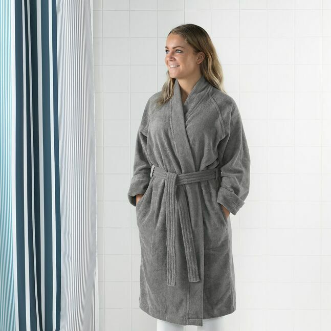 Еще один момент, который заставил команду задуматься, - это руки людей. "Мы заметили, что некоторые не знали, куда их деть, когда халат был завязан и карманы оказывались перед животом. Чтобы решить эту проблему, мы поместили карманы дальше назад, а отверстия расположили сбоку", - рассказывает Сара. Мы также, кажется, сидим определенным образом, когда расслабляемся в халате. Некоторые модели говорили: "Ой, может, мне стоит скрестить ноги, чтобы не показывать слишком много?". Но мы считаем, что люди должны сидеть так, как им нравится, лишь бы им было удобно". Поскольку ROCKÅN имеет большой напуск и длиннее, чем обычный халат, его легко прикрыть, так что вам не нужно беспокоиться о подобных вещах", - говорит Сара.