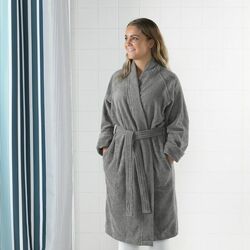 Удобный фасон для долгих, ленивых утренних посиделок дома - мягкая махра с обеих сторон, регулируемые петли для ремня, практичные боковые карманы и рукава, в которых легко двигаться.
