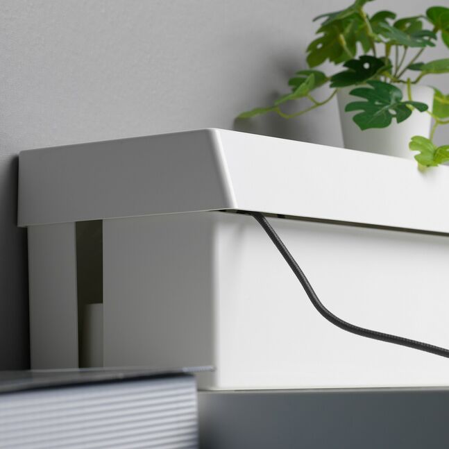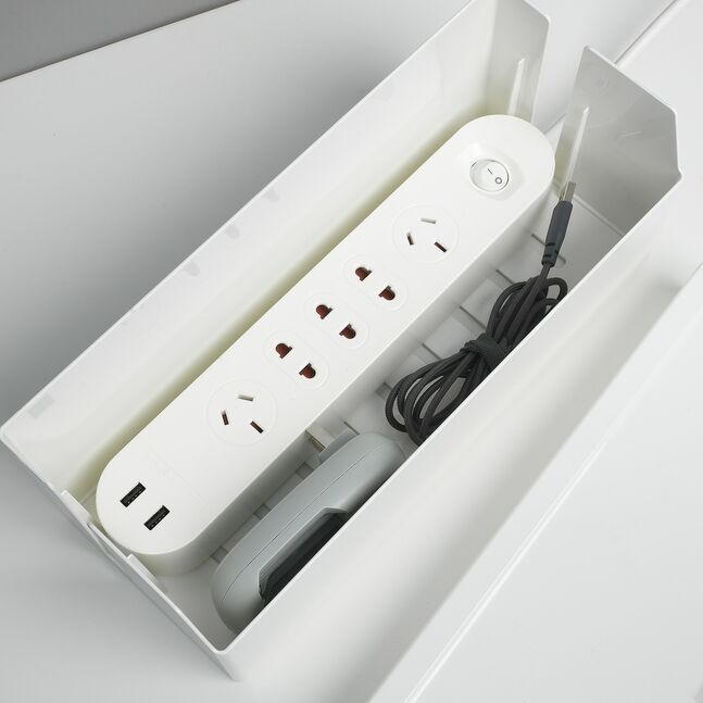 Коробка поможет вам собрать и спрятать кабели, зарядные устройства и удлинители на столе или полу и облегчит уборку.