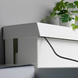 Устали от путающихся кабелей, зарядных устройств и удлинителей? Вы можете спрятать все в этой коробке, а поскольку крышка немного больше, вы сможете легко вытащить кабели, чтобы зарядить телефон или планшет.