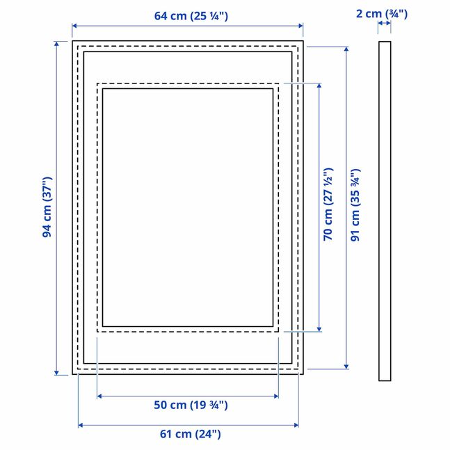 Эта рамка подойдет для картины размером 50x70 см, если использовать ее с креплением, и для картины размером 61x91 см, если использовать рамку без крепления.