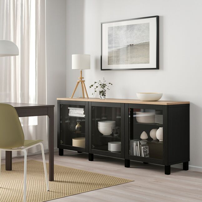 Черно-коричневый SINDVIK с прозрачным стеклянным фасадом идеально сочетается с нашей черно-коричневой рамой BESTÅ. Его чистые линии и простой дизайн подчеркивают красоту ваших самых изысканных вещей. Он сочетается как с традиционными, так и с современными фасадами.