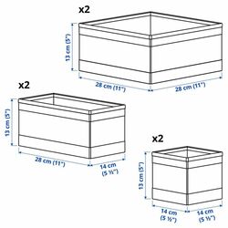 Размеры: 14x14x13 см, 28x14x13 см и 28x28x13 см, по 2 штуки.