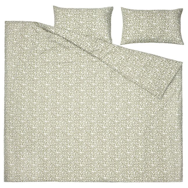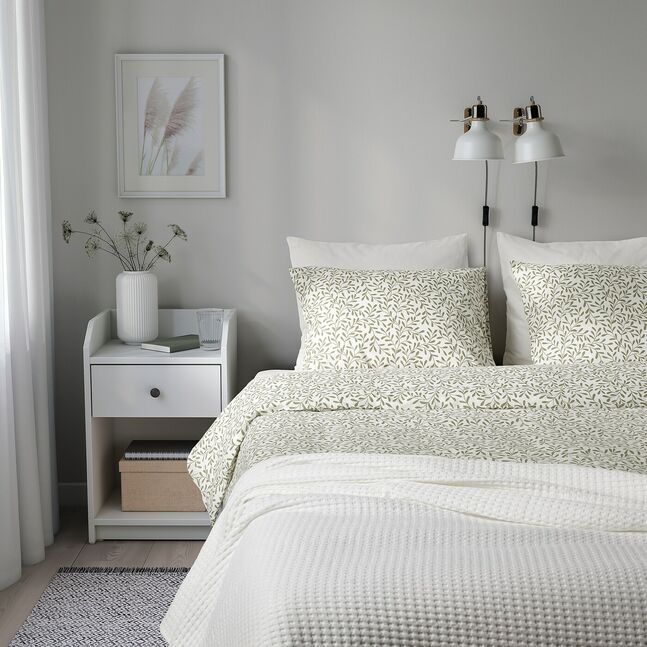 Узор в виде листьев привнесет ботаническую атмосферу в ваше убежище. Этот комплект изготовлен из смеси переработанного полиэстера и натурального хлопка, благодаря чему ткань не мнется, дышит и впитывает влагу.