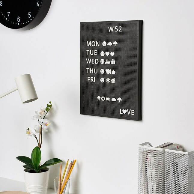 Поприветствуйте гостей или начните день с любимой цитаты - и меняйте надпись, когда захотите. Наслаждайтесь бесконечными комбинациями с 426 буквами, символами и цифрами на этой прищепке.