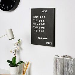 С серией SVENSÅS вы можете создать персональный коллаж из памятных досок из разных материалов ⎼ и менять их как угодно часто, поскольку все они имеют одинаковое решение для подвешивания и размеры.