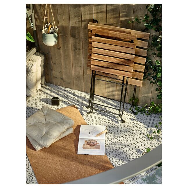Складной, прочный и привлекательный благодаря сочетанию натуральной древесины акации и стали с порошковым покрытием. Идеальный размер для балкона или уютного уголка сада.