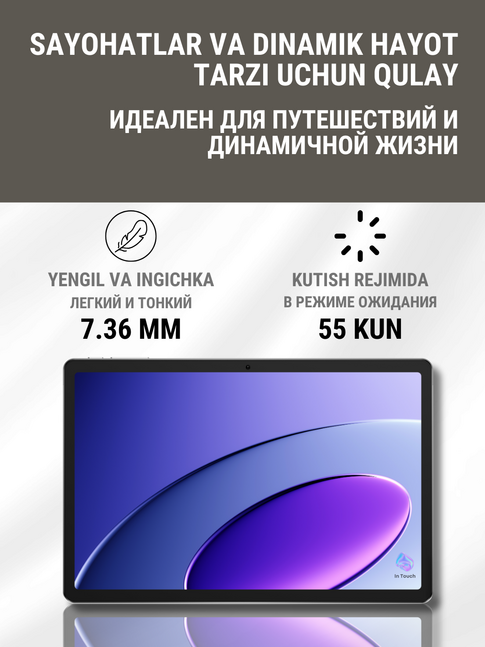 Tecno MegaPad 10 подходит для различных задач: от повседневной работы и учебы до мультимедийных развлечений. Большой экран, мощная батарея, высокое качество звука и поддержка множества умных функций делают его отличным выбором для пользователей, которым нужен производительный и удобный планшет. Купить планшет Tecno MegaPad 10 можно уже сейчас в магазине In Touch.
