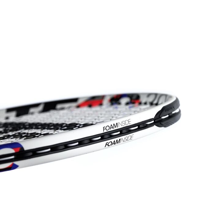 Геометрия RS Sharp Section оптимизирует гибкость рамы при ударе, чтобы держать траекторию под контролем. Кроме того, ракетка полностью покрыта пеной, чтобы поглощать удары и придавать особое ощущение. Втулки Extense BG шире и длиннее, что позволяет струнам дышать и продолжать реагировать на удары не по центру.
