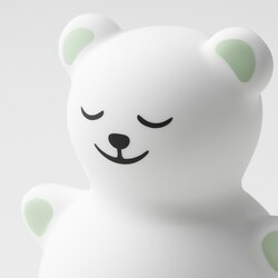 С одной стороны лампы у медведя открыты глаза и ярко-желтые уши, а с другой - закрыты глаза и зеленые уши.