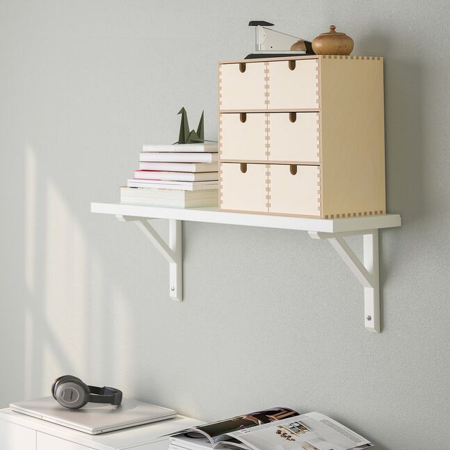 Вы можете отрезать настенную полку именно той длины, которая вам нужна, и использовать кронштейн GRANHULT, чтобы скрыть обрезанный край.