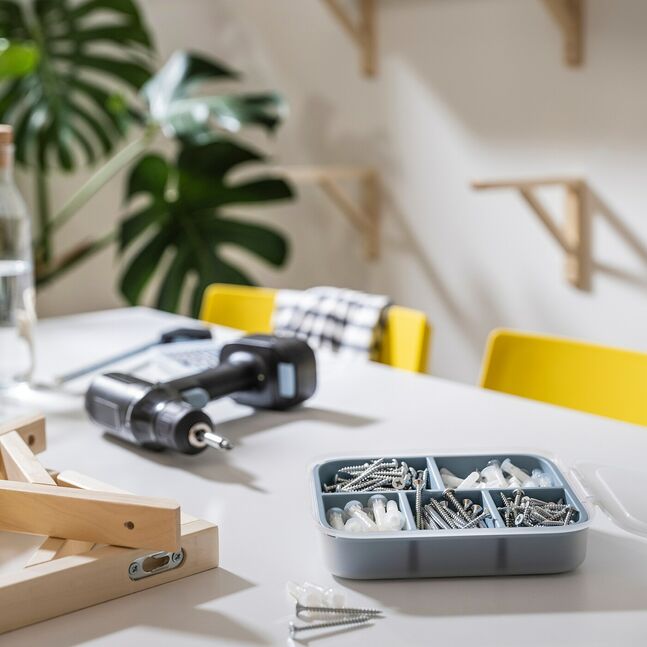 Когда шурупы и дюбели закончатся, коробку можно использовать для хранения мелких вещей.