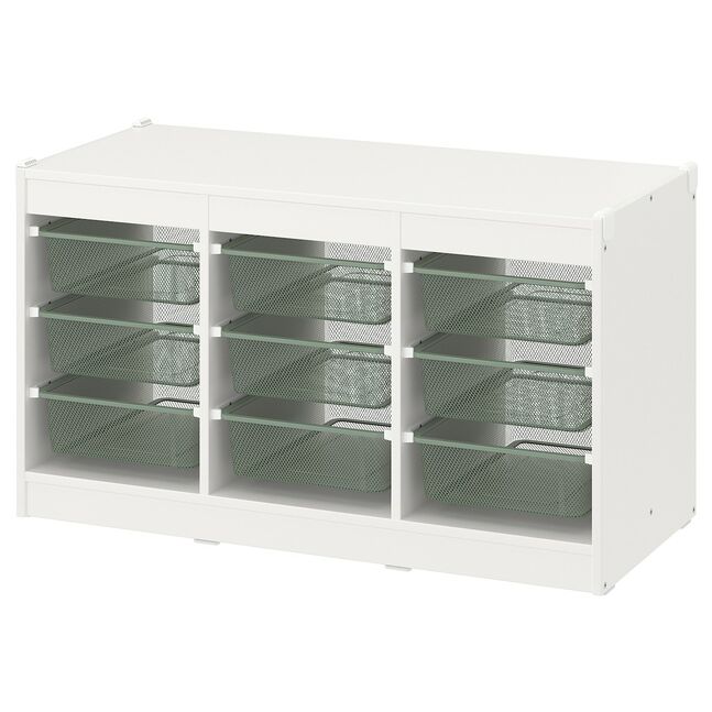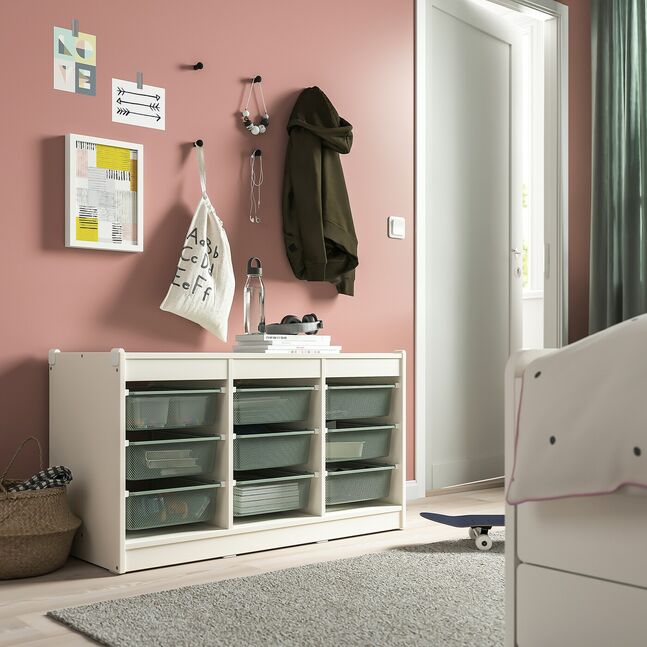 С помощью рамок и сетчатых ящиков для хранения серии TROFAST можно создать индивидуальное решение для хранения больших и маленьких вещей даже в других частях дома.