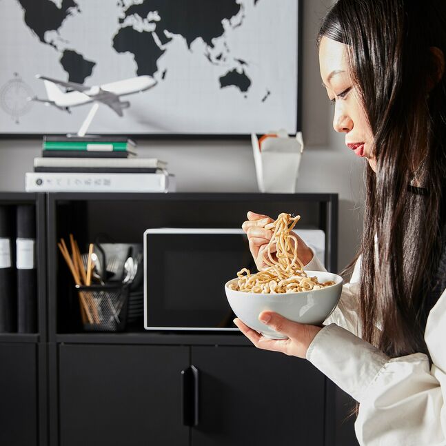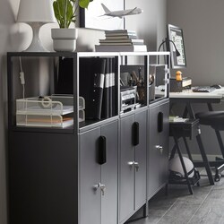 Храните такие вещи, как бумаги, папки и зарядные устройства, спрятав их за дверцами, и наслаждайтесь свободным от беспорядка пространством.