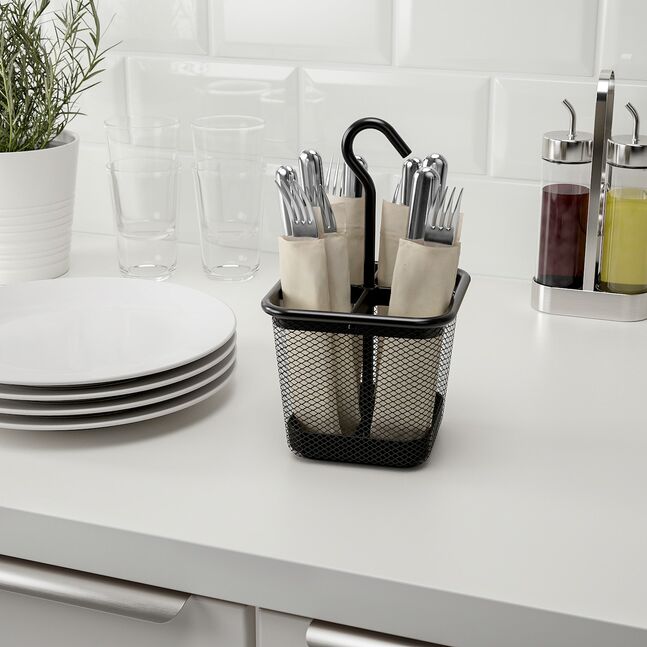Поместите подставку для столовых приборов в выдвижной ящик или держите ее под рукой на столешнице.