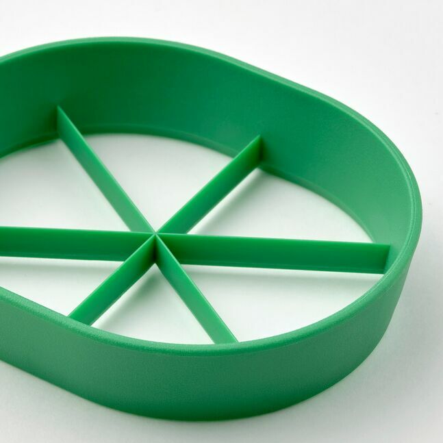 Светло-зеленый режущий инструмент идеально подходит для нарезки яиц на клинья.