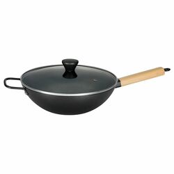 Входящая в комплект крышка из толстого стекла помогает сохранять тепло в воке и при этом позволяет видеть продукты через стекло.
