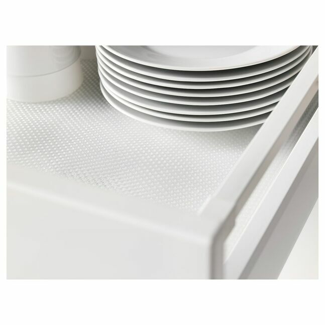 Коврик для ящиков VARIERA удерживает кастрюли и посуду на месте и гасит звук брякающей посуды. Он также защищает ящики и полки от царапин. Вырежьте пластиковый коврик, чтобы он поместился внутри ваших кухонных шкафов и ящиков. Практично и легко чистится.