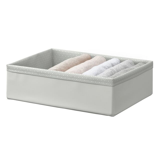 Qayta ishlangan poliesterdan tayyorlangan biroz chuqurroq mato tashkilotchisi javonlarda va tortmalarda bo'sh joydan foydalanishga yordam beradi. Bir yoki bir nechtasidan foydalaning, turli o'lchamlarni birlashtiring va ehtiyojlaringizga mos echim yarating.